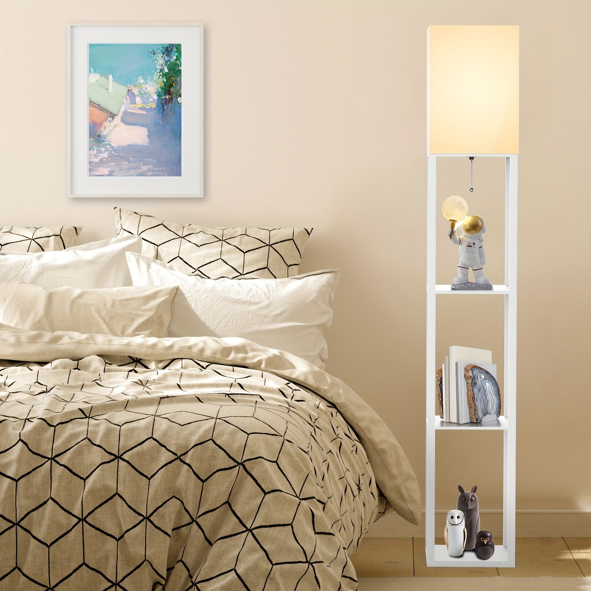 Elegant Design: The column-style lamp features built-in shelves, providing a unique space to display decor items, books, or plants.