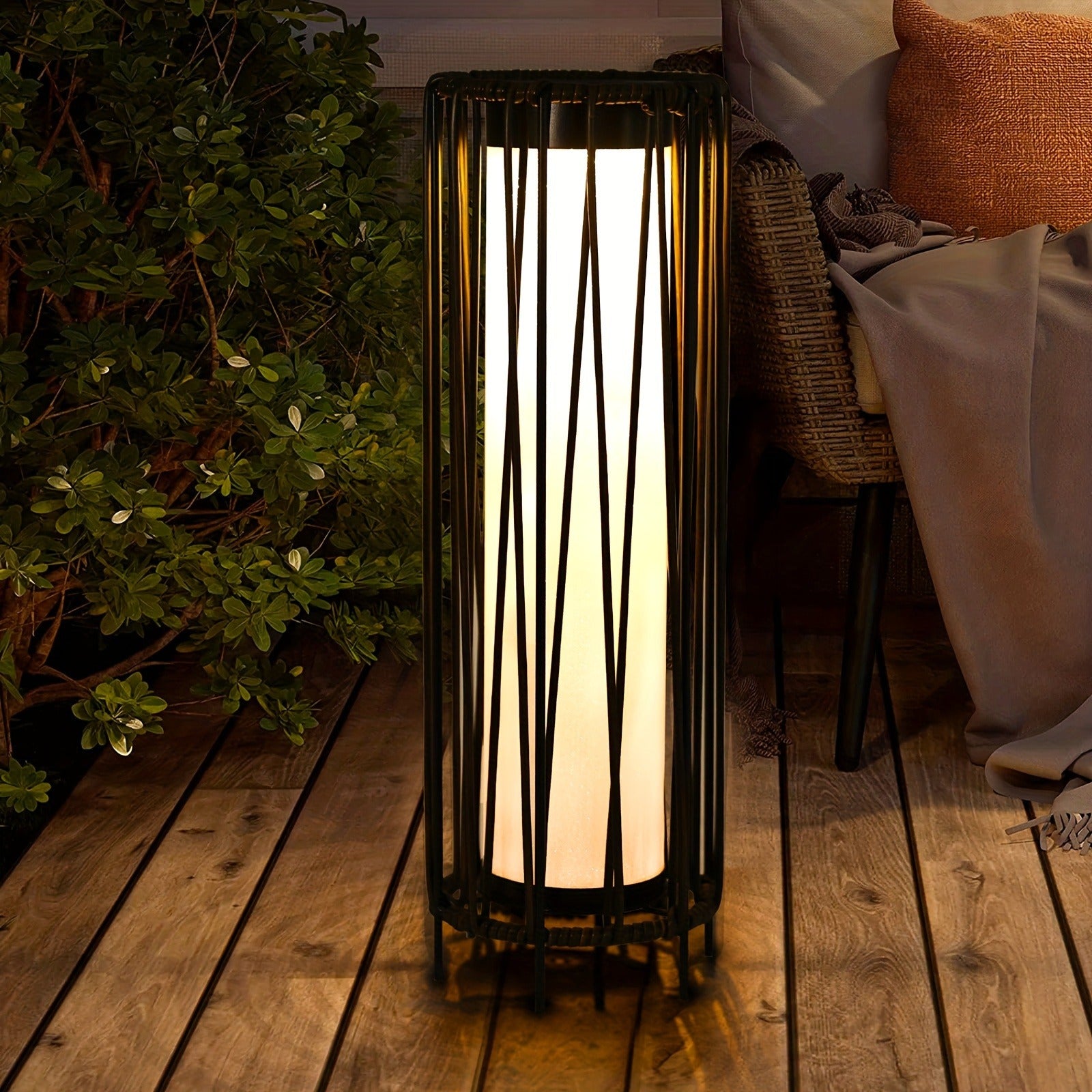 Solar Floor Lamp, Ourdoor Lamps for Patio Rattan Outside Solar Lamp Decor for Porch, Yard, Garden, Deck, Lawn